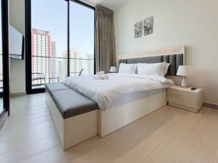 APARTMENT DETAILS AND AMENITIES: – STUDIO Fully Furnished Apartment – 1 King Size Bed – 1 Bathrooms – Balcony –