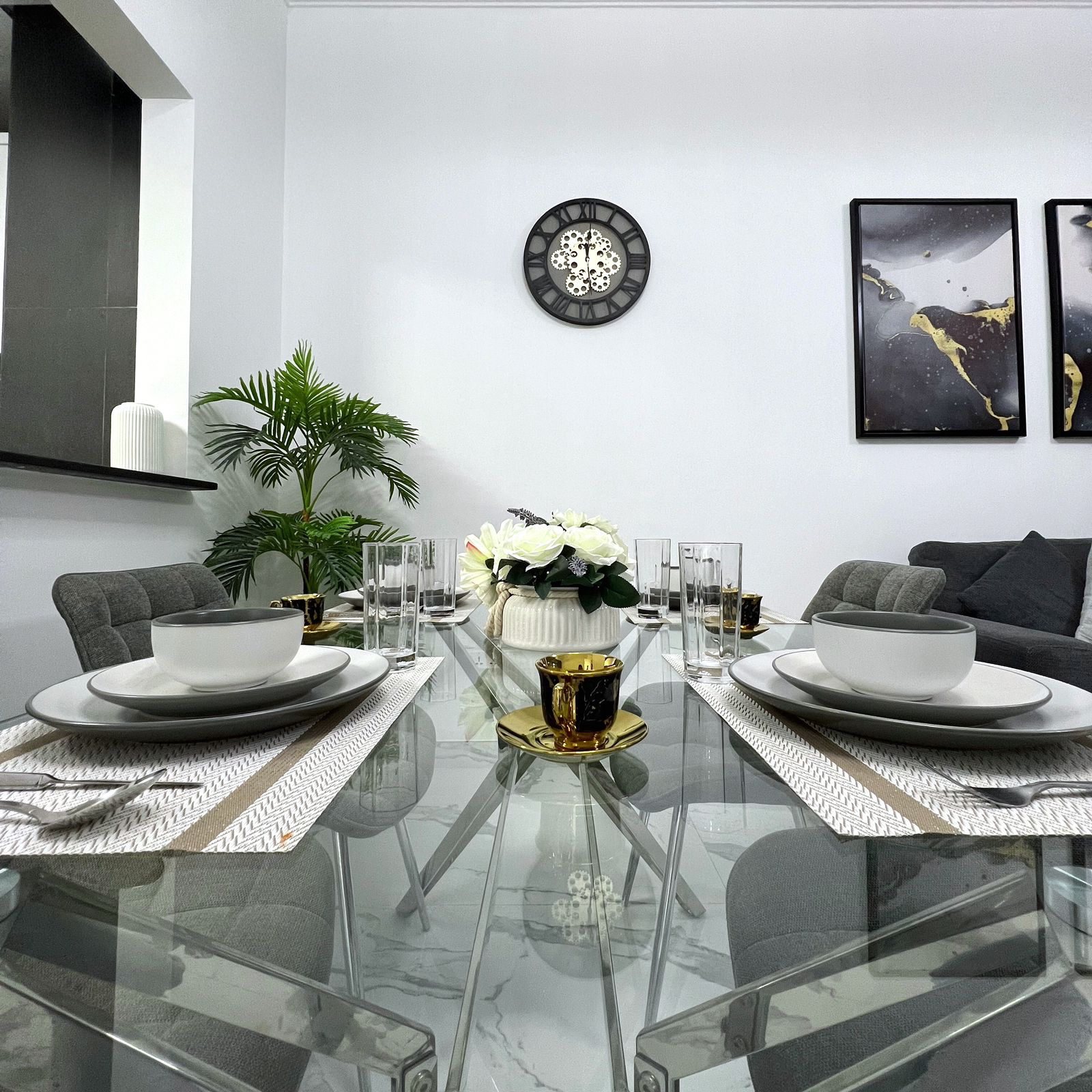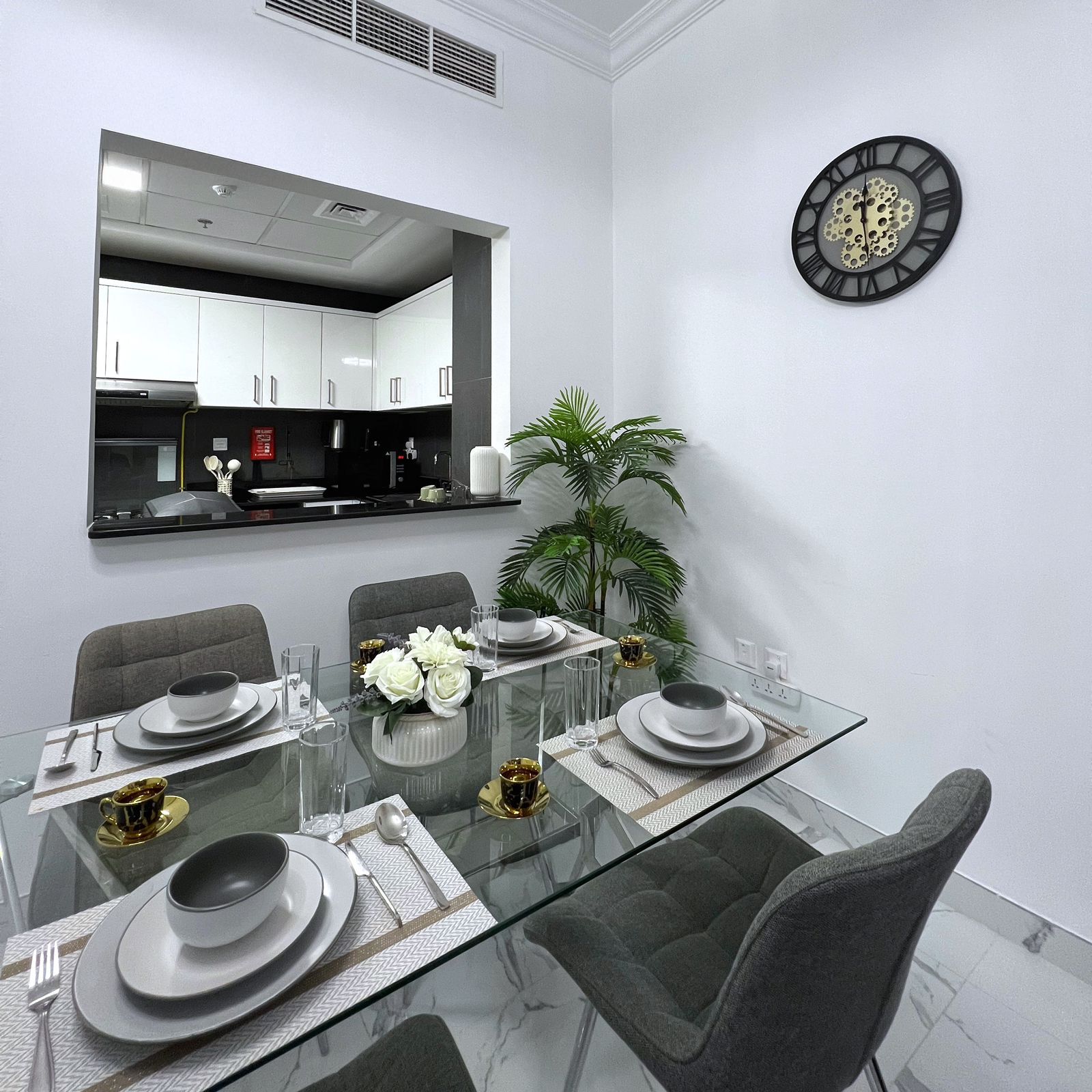 – Fully equipped kitchen with kitchenware and white goods