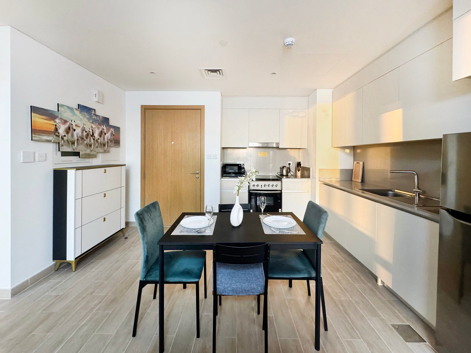 Welcome to your chic 1-bedroom apartment in Dubai Creek Harbour. This modern space boasts panoramic views of the iconic skyline and Dubai Creek. The stylish living area, well-equipped kitchen, and serene bedroom with a private balcony create a perfect blend of comfort and sophistication. Enjoy luxury living with exclusive access to amenities such as a fitness center and pool. Immerse yourself in the epitome of Dubai’s cosmopolitan lifestyle at this prime location.